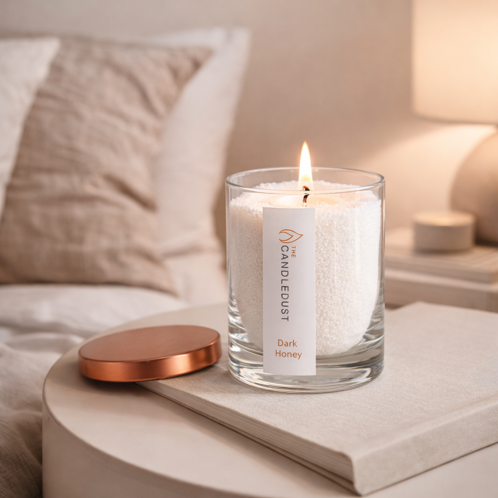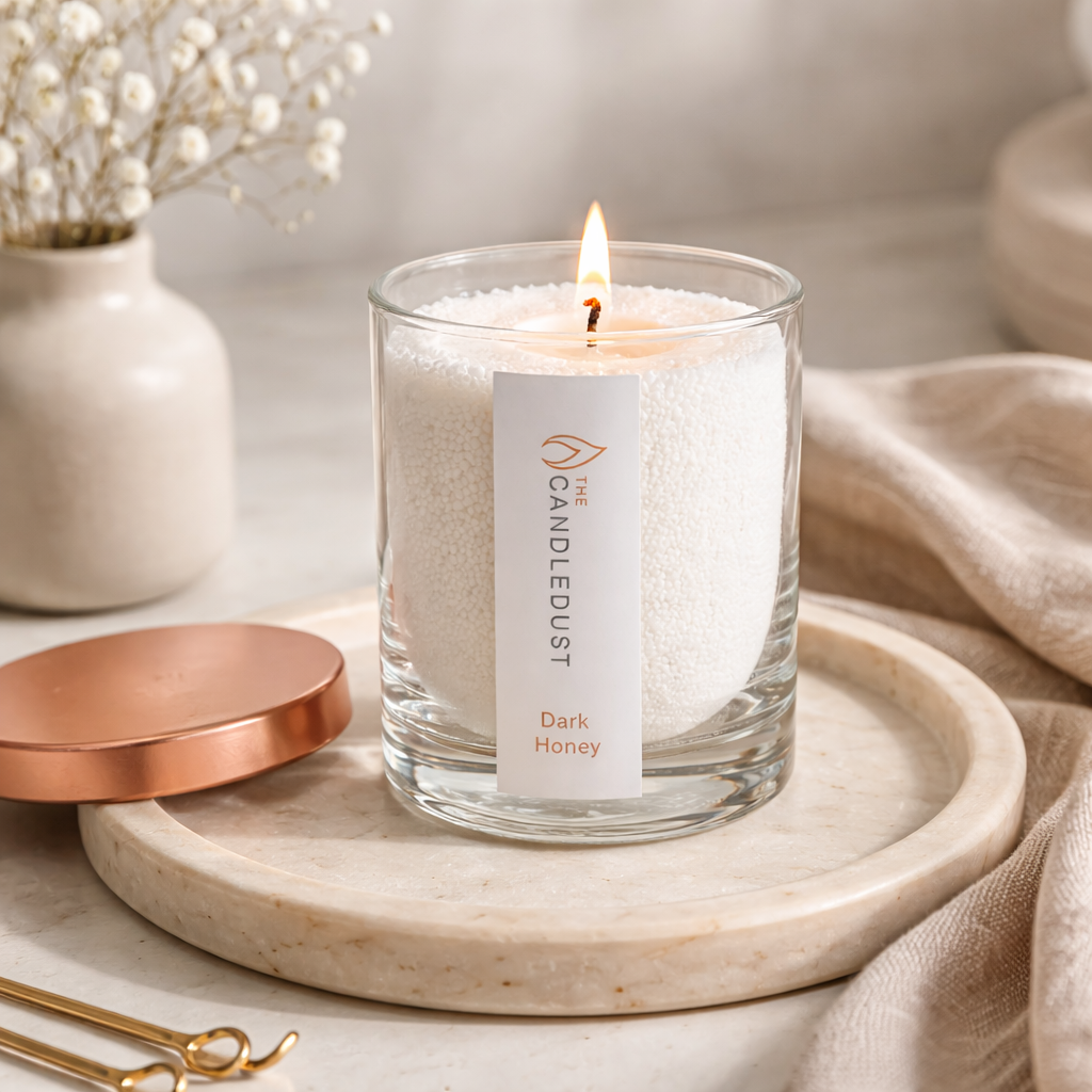 Esta vela en polvo en vaso Miel oscura 160 g , elaborada por Candledust, forma parte de una colección curada pensada para acompañar rituales cotidianos con discreción y elegancia.